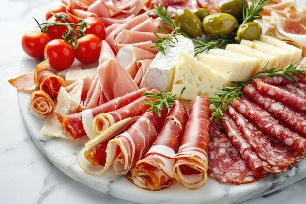 Calabrese Salami, Mortadella, Prosciutto, Soppressata, Artisanal Cheese Selections, Caper Berries, Crostini, Roasted Garlic
